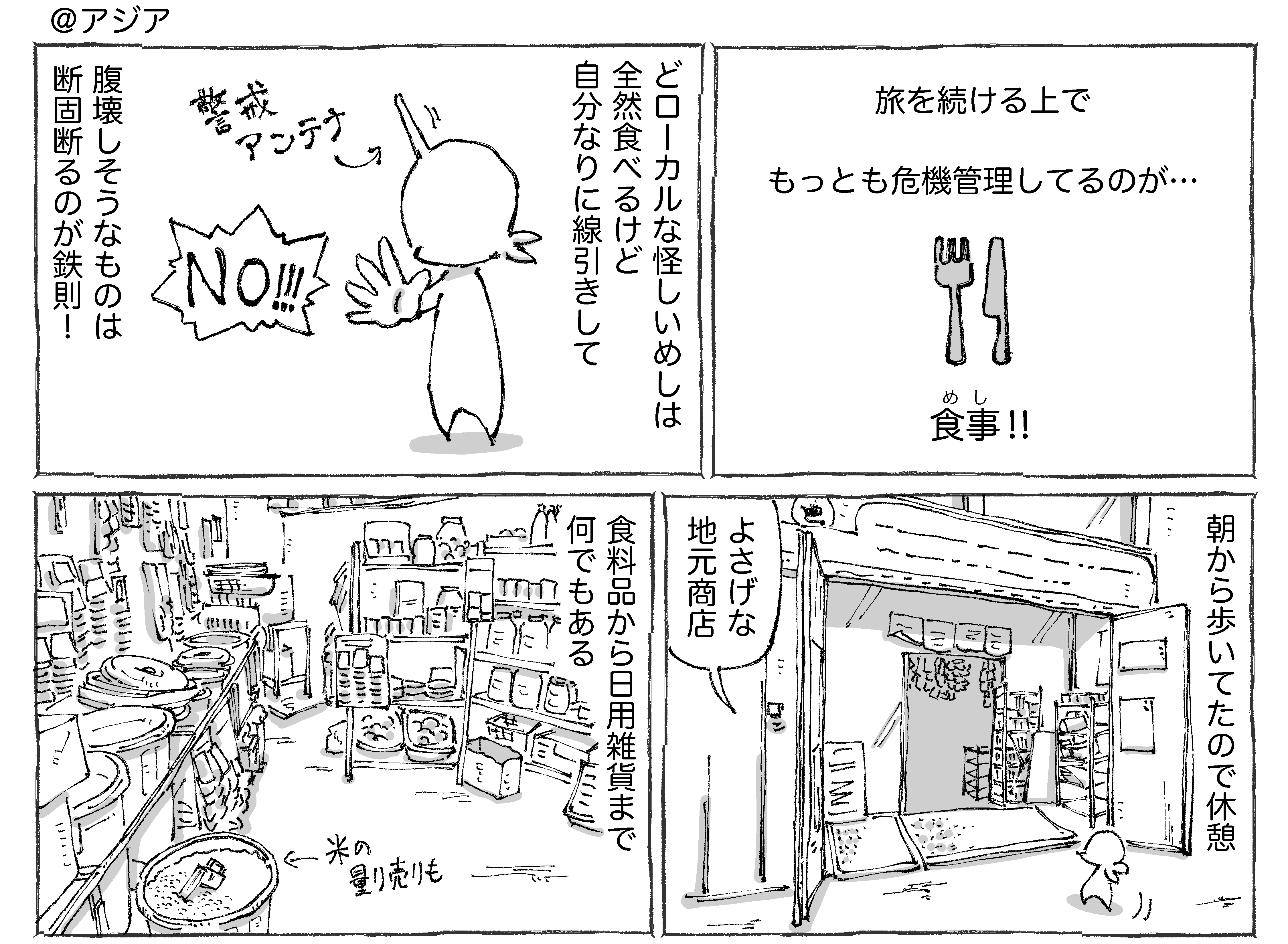 海外商店の大将推奨めし。 2022年07月04日 ●漫画も写真もタップでくっきり見ていただけます☀︎うれし。大将に撮って頂いた記念写真☀︎イスから撮影から優しすぎる。。。味のある店内も絵になりまくりでローカルな路地を歩いてよかったと思える醍醐味的なひととき☀︎●漫画も写真もタップでくっきり見ていただけます☀︎こちらは旅の醍醐味な飯🍜この時も旅の醍醐味。。。な旅日記🌏 🔻他の連載ものもどぞ🔻☝️読者登録して頂けるとありがたすぎます! 「シビれめし」カテゴリの最新記事 タグ :#グルメ#アジアめし#心打たれた < 前の記事次の記事 > コメント コメント一覧 (24) 1. Nyaaaaagon 2022年07月04日 21:06 落ち着いて座ってゆっくり食べなさいって言ってくれてる気がします お店も日用品の何でも屋さんな感じが良いですねぇ そして店内が整えられてて欲しいものがすぐ探せそう! 0 五箇野人(ごかやじん) がしました 11. 五箇野人 2022年07月05日 21:02 >>1 めちゃうれしいですよね☀︎ 0 五箇野人(ごかやじん) がしました 2. 鳥居 2022年07月04日 21:16 色々問題はあるにせよ、早く日本に海外からの観光客が戻ってきてほしいと心から思いました🥲💕 相手が何を求めてるか推理して喜んでくれた時の快感が癖になってるのです。 0 五箇野人(ごかやじん) がしました 3. 鳥居 2022年07月04日 21:21 >>2 日本に、というか地元に、でした。 すみません…(恥) 0 五箇野人(ごかやじん) がしました 9. 鳥居 2022年07月05日 00:57 >>2 五箇さん、すみませんでした。 コロナ前の懐かしさに夢中になり、よく考えずにコメントを投稿していました。 多くの方を驚かせてしまうかもしれないので、もし良ければ削除して頂ければと思います。 0 五箇野人(ごかやじん) がしました 10. 鳥居 2022年07月05日 20:51 >>9 何度も申し訳ありません。 上のコメントは気にしないでください。 何をやってるんだ本当に…💧 0 五箇野人(ごかやじん) がしました 12. 五箇野人 2022年07月05日 21:06 >>2 自分も早く海外の方が普通に 来れるようになってほしいのは 同じ気持ちです☀︎ ありがとうございます☀︎ 0 五箇野人(ごかやじん) がしました 20. 鳥居 2022年07月07日 00:26 >>12 優しいお言葉ありがとうございます。 本当に申し訳ありませんでした。 0 五箇野人(ごかやじん) がしました 4. スサノオ 2022年07月04日 21:30 写真で見るだけでもいい人そうなのが伝わってくるご主人。 0 五箇野人(ごかやじん) がしました 13. 五箇野人 2022年07月05日 21:07 >>4 ですよね☀︎ 0 五箇野人(ごかやじん) がしました 5. しずのん 2022年07月04日 21:48 めちゃめちゃいい笑顔ですね😊 親切すぎる✨お店キレイにしてありますね~いろいろ買っちゃいそう🎵 台湾に行った時も、屋台でビニール袋でビーフン(?)的なものが売ってました。割りばしぶっさして☺️ 0 五箇野人(ごかやじん) がしました 14. 五箇野人 2022年07月05日 21:08 >>5 袋ビーフンもいいですね☀︎ 0 五箇野人(ごかやじん) がしました 6. 教王 2022年07月04日 22:31 おいしいではなく、無難と言う当たりに外食飯上級者の習性が垣間見れました 0 五箇野人(ごかやじん) がしました 15. 五箇野人 2022年07月05日 21:11 >>6 味よりお腹に対しての 無難なんですが たしかに見極める目は 養われてきてる気がします☀︎ 0 五箇野人(ごかやじん) がしました 7. 名無し 2022年07月04日 22:49 本当にいい笑顔☺️ 自分の仕事にしっかり自信があって、心から人を気遣える人の顔な気がする( ;∀;) 0 五箇野人(ごかやじん) がしました 16. 五箇野人 2022年07月05日 21:11 >>7 ほんとですよね☀︎ 0 五箇野人(ごかやじん) がしました 8. ミッチ 2022年07月04日 23:30 無難なにより。。ですです。 0 五箇野人(ごかやじん) がしました 17. 五箇野人 2022年07月05日 21:12 >>8 すぐトイレ探す事態にならず 味もうまくてよかったです☀︎ 0 五箇野人(ごかやじん) がしました 18. どこかの息子 2022年07月06日 08:16 紳士店長の 弾ける笑顔が素敵なこと!! なんか全てを許された気にすらなる。 飯は、お写真で見てもインパクト抜群ですね! キチンとプラ弁当箱に入った日本の惣菜も見た目が美しくて良いですが、ゴミの事を考えると袋入りはゴミも少なくて良いのかも? 某コンビニの様に底上げすることは出来ませんし、裸で勝負な感じ。 0 五箇野人(ごかやじん) がしました 19. 五箇野人 2022年07月06日 20:27 >>18 ほんと包容力というか…たまらんですよね☀︎ 0 五箇野人(ごかやじん) がしました 21. ちゃま 2022年08月19日 12:01 今日ゴカさんの漫画を見かけて 興味深い、面白いわで 半日読んでしまった!!(笑) 謎のお惣菜袋 うん、何だろう感満載だわ(^ ^) 0 五箇野人(ごかやじん) がしました 22. 五箇野人 2022年08月19日 20:46 >>21 半日も使って頂いて ありがたすぎます! 今後も気張れます☀︎ 0 五箇野人(ごかやじん) がしました 23. 私もまた海外を旅したーい! 2025年05月06日 14:37 実は麺が一番美味しかったかも笑 他人との繋がりが日本は本当に薄っぺらくなってるのでホッコリしました。 0 五箇野人(ごかやじん) がしました 24. 豚バラ飯 2025年05月06