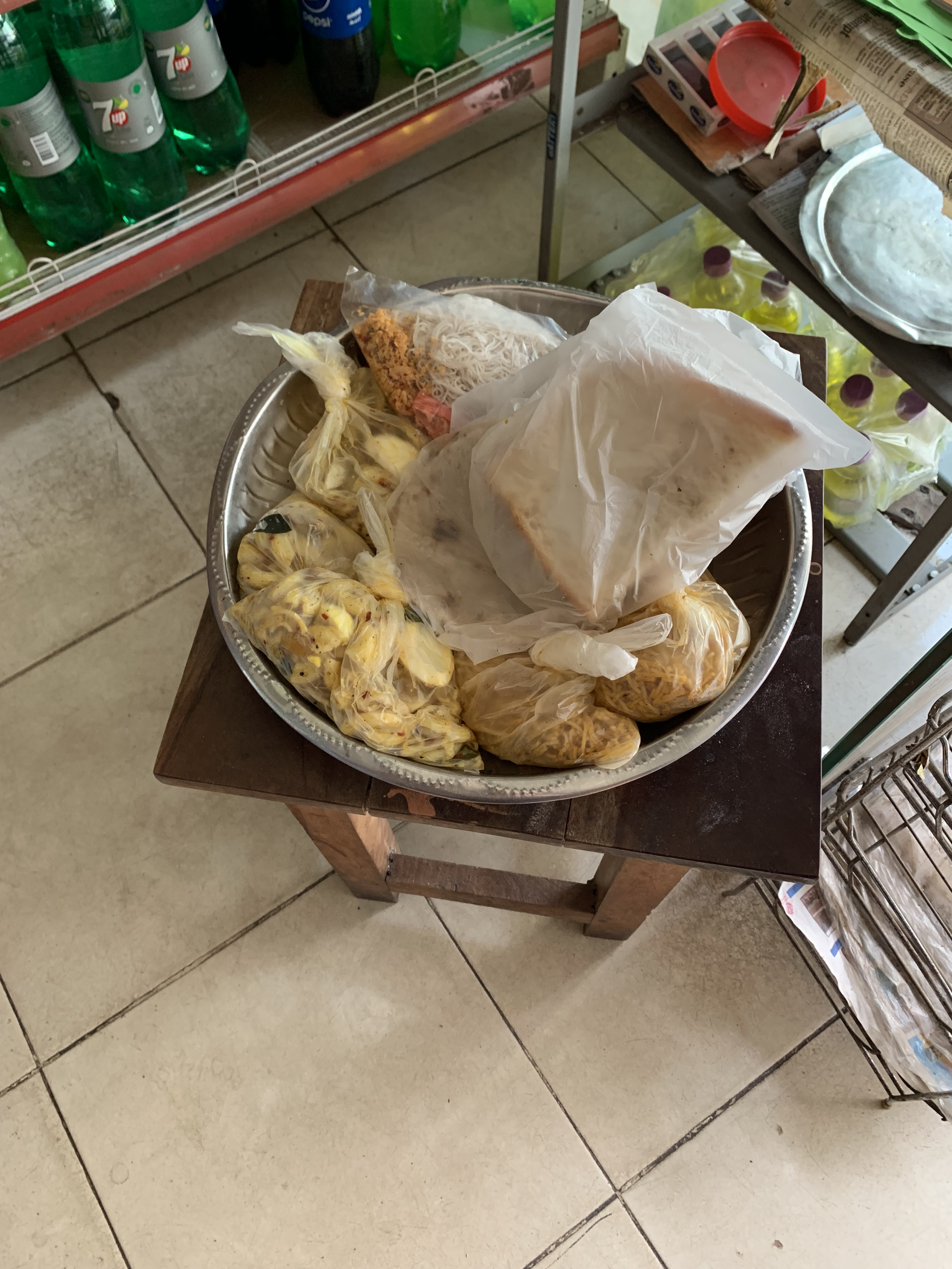 台湾に行った時も、屋台でビニール袋でビーフン(?)的なものが売ってました。割りばしぶっさして☺️