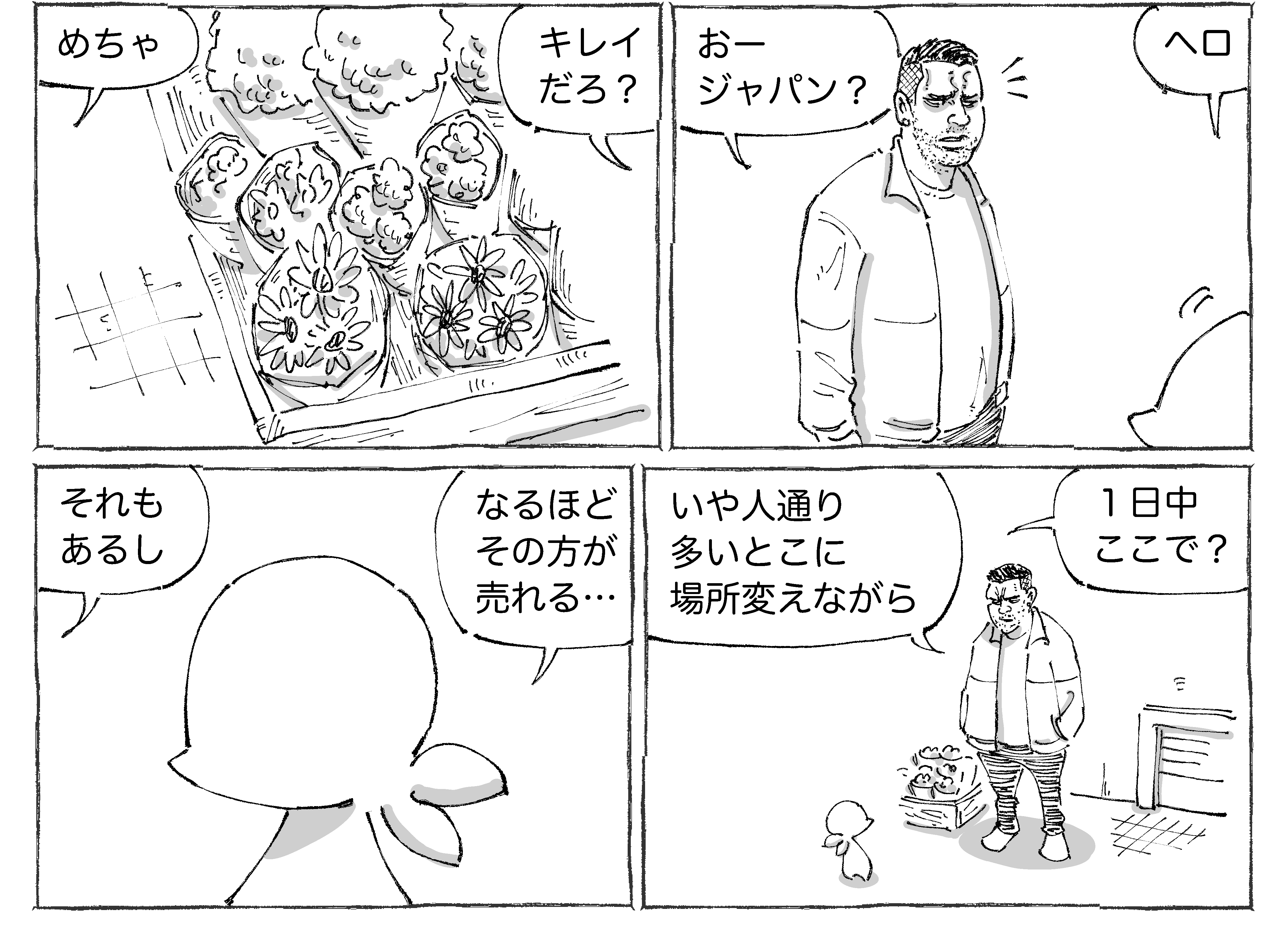 海外花店紳士の胸のうちめし。 2022年10月24日 ●漫画も写真もタップでくっきり見ていただけます☀︎大本音。夕方になって近くにいた仲間と一緒に場所移動で去って行かれた紳士☀︎花を担いでパックを持つ姿は至高。。。●漫画も写真もタップでくっきり見ていただけます☀︎この時も本音爆発な飯🍜こちらは本音爆発。。。な旅日記🌍 🔻他の連載ものもどぞ🔻☝️読者登録して頂けるとありがたすぎます!単行本3巻がでますのでよろしければぜひ☀︎ 「シビれめし」カテゴリの最新記事 タグ :#グルメ#中南米めし#かわいい < 前の記事次の記事 > コメント コメント一覧 (18) 1. シリウス 2022年10月24日 21:07 花より団子(酒)ですね!🌹🍡🍺 0 五箇野人(ごかやじん) がしました 9. 五箇野人 2022年10月25日 20:33 >>1 まさに! 0 五箇野人(ごかやじん) がしました 2. かな 2022年10月24日 21:24 「ヘロ」って、なんかかわいい💓 気軽に声かけちゃう五箇野人さんすごいなぁ😊💕 0 五箇野人(ごかやじん) がしました 10. 五箇野人 2022年10月25日 20:33 >>2 ほんと皆さんが優しいのでできてます☀︎ 0 五箇野人(ごかやじん) がしました 3. こなこ 2022年10月24日 21:40 紳士千鳥足になっていないか心配😆 お仲間のお花担ぎ方凄いですね! 0 五箇野人(ごかやじん) がしました 12. 五箇野人 2022年10月25日 20:34 >>3 お仲間たしかに! 0 五箇野人(ごかやじん) がしました 4. ミー太郎 2022年10月24日 21:40 2枚目の写真のおじさんの顔が結構ほろ酔い顔ですよね(*'ω'*) 飲みながらテンション上げて仕事してるのね! 0 五箇野人(ごかやじん) がしました 11. 五箇野人 2022年10月25日 20:33 >>4 まちがいないですよね☀︎ 0 五箇野人(ごかやじん) がしました 5. スサノオ 2022年10月24日 21:43 「ワインって、氷で冷やしてよかったっけ?」という疑問を吹き飛ばす紳士のインパクト。 0 五箇野人(ごかやじん) がしました 13. 五箇野人 2022年10月25日 20:35 >>5 インパクトありますよね☀︎ 0 五箇野人(ごかやじん) がしました 6. はやとん 2022年10月24日 21:43 2枚目写真のお仲間の方の担ぎ方がスゴイ 0 五箇野人(ごかやじん) がしました 14. 五箇野人 2022年10月25日 20:35 >>6 本当ですよね☀︎ 0 五箇野人(ごかやじん) がしました 7. さえ 2022年10月24日 23:59 自由〜 日本でやったら一撃でクビ笑 このゆるさが良い。 0 五箇野人(ごかやじん) がしました 15. 五箇野人 2022年10月25日 20:35 >>7 ゆるさホントにいいですよね☀︎ 0 五箇野人(ごかやじん) がしました 8. みと 2022年10月25日 14:20 ワイン!卵スープに見えました😆 0 五箇野人(ごかやじん) がしました 16. 五箇野人 2022年10月25日 20:37 >>8 卵スープ! 0 五箇野人(ごかやじん) がしました 17. ぬこぬ 2023年04月18日 15:18 2枚目の後ろの人、花の運び方がすごい! 0 五箇野人(ごかやじん) がしました 18. 五箇野人 2023年04月18日 20:26 >>17 むちゃ同感です! 0 五箇野人(ごかやじん) がしました コメントフォーム 名前 コメント 記事の評価 リセット リセット 顔 星 情報を記憶 コメントを投稿する