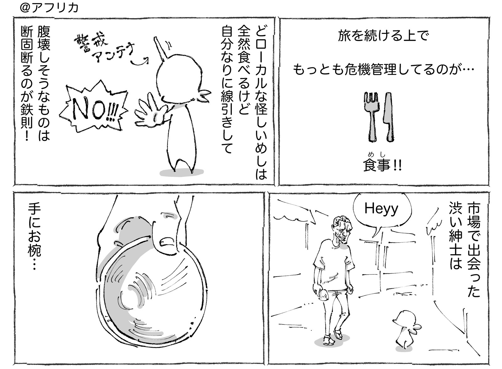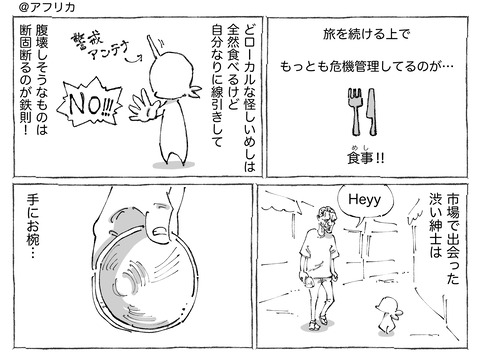 【10】海外の路上で買った卵が非常事態。 ※連載ものは木~土に更新中です☀︎前回の【9】はこちらです✍️ はじめの【1】はこちらです✍️ @アフリカつづきの【11】はこちらです✍️ 👇各話一覧はこちらです👇【1】 【2】 【3】 【4】【5】 【6】 【7】 【8】【9】 【10】 【11】 【12】ノぉー???す ... ※連載ものは木~土に更新中です☀︎前回の【9】はこちらです✍️ はじめの【1】はこちらです✍️ @アフリカつづきの【11】はこちらです✍️ 👇各話一覧はこちらです👇【1】 【2】 【3】 【4】【5】 【6】 【7】 【8】【9】 【10】 【11】 【12】ノぉー???すぐそばに停めてあった自転車には見事な装備が☀︎そんな写真を撮ってた直後のNO。。。●漫画も写真もタップでくっきり見ていただけます☀︎ 👇こちらもどうぞ👇 👇実体験の紀行もの👇☝️読者登録して頂けるとありがたすぎます!☝️※2024年よりLINEでの通知が終了します…! タグ :#海外の路上で買った卵が非常事態。 2024年06月28日 続きを読む