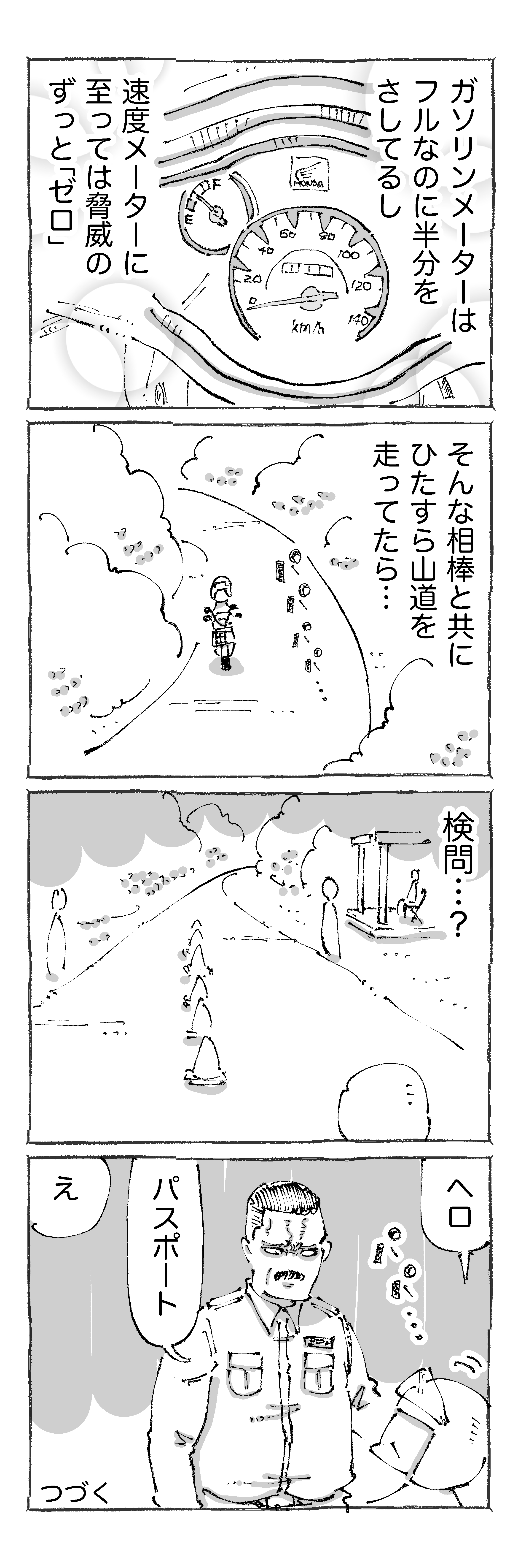【2】海外バイク旅でガス欠からの非常事態な話。 2023年08月24日 ※連載ものは水~土に更新中です☀︎はじめの【1】はこちらです✍️@アジアつづきの【3】はこちらです✍️👇各話一覧はこちらです👇【1】 【2】 【3】 【4】【5】 【6】 【7】 【8】【9】 【10】 【11】 【12】【13】 【14】 【15】 【16】山の中で。。。写真は実際の検問とそこに至るまでの山道で見た山の上の大仏☀︎修繕中なのか足場で囲われた大仏がいい感じ。。全然車が来ないので停車して写真撮りつつ進む☀︎●漫画も写真もタップでくっきり見ていただけます☀︎ 👇他の旅の実録もどぞ👇 🔻他の連載ものもどぞ🔻この時もまさかの存在だった。。。旅日記🌏こちらはまさかの存在だった飯🍜☝️読者登録して頂けるとありがたすぎます! 「連載もの」カテゴリの最新記事 タグ :#海外バイク旅でガス欠からの非常事態な話。 < 前の記事次の記事 > コメント コメント一覧 (24) 1. ttt 2023年08月24日 21:01 そりゃそうなりますわな・・・ 0 五箇野人(ごかやじん) がしました 13. 五箇野人 2023年08月25日 20:30 >>1 まさに。。。 0 五箇野人(ごかやじん) がしました 2. ギャオス 2023年08月24日 21:04 パスポートは…預けて… 0 五箇野人(ごかやじん) がしました 14. 五箇野人 2023年08月25日 20:30 >>2 ほんと。。。 0 五箇野人(ごかやじん) がしました 3. (;´Д`) 2023年08月24日 21:06 前回、えっ!?パスポート預けちゃうの!?常に携帯してなくていいの!?とか思ってたら、案の定(;´Д`) 0 五箇野人(ごかやじん) がしました 15. 五箇野人 2023年08月25日 20:31 >>3 ホントに。。。 0 五箇野人(ごかやじん) がしました 4. ミー太郎 2023年08月24日 21:08 アレッ⁈ パスポート、バイク屋さんに預けちゃたよね? 0 五箇野人(ごかやじん) がしました 16. 五箇野人 2023年08月25日 20:31 >>4 あれ。。。 0 五箇野人(ごかやじん) がしました 5. 黒猫羆 2023年08月24日 21:19 詰んだ感は出国不可事件以上w 0 五箇野人(ごかやじん) がしました 17. 五箇野人 2023年08月25日 20:31 >>5 たしかに。。。 0 五箇野人(ごかやじん) がしました 6. 鳥居 2023年08月24日 21:35 あの、ごめんなさい。何よりもまず五箇さんの等身に触れてからでないと何の話もできないっす…w 足が伸びるパターンは見慣れなくて😂 0 五箇野人(ごかやじん) がしました 18. 五箇野人 2023年08月25日 20:32 >>6 足 届いてよかったです☀︎ 0 五箇野人(ごかやじん) がしました 7. ニャン太 2023年08月24日 21:41 やっぱり海外にいるからには、色々な場面でパスポートは必要ですよね 0 五箇野人(ごかやじん) がしました 19. 五箇野人 2023年08月25日 20:33 >>7 ですね…! 0 五箇野人(ごかやじん) がしました 8. (*'▽'*) 2023年08月24日 21:54 足!あしっ!!!www まさかの伸びるww 可愛いwww 0 五箇野人(ごかやじん) がしました 20. 五箇野人 2023年08月25日 20:33 >>8 何か自然と伸びました☀︎ 0 五箇野人(ごかやじん) がしました 9. Nyaaaaagon 2023年08月25日 00:49 ありゃま… パスポート預けちゃいましたもんねぇ 0 五箇野人(ごかやじん) がしました 21. 五箇野人 2023年08月25日 20:34 >>9 本当。。。 0 五箇野人(ごかやじん) がしました 10. Jun 2023年08月25日 07:34 もしかして、お金を払うと通してくれる「バイク屋さんとグル」な検問所だったりして・・・ 0 五箇野人(ごかやじん) がしました 22. 五箇野人 2023年08月25日 20:35 >>10 なるほど。。。 0 五箇野人(ごかやじん) がしました 11. れお 2023年08月25日 09:01 ながいっ…!。 あし、ながっ。 いつものキュートなデザインから 足だけ割と実寸サイズ 0 五箇野人(ごかやじん) がしました 23. 五箇野人 2023年08月25日 20:35 >>11 実寸たしかに☀︎ 0 五箇野人(ごかやじん) がしました 12. つまり 2023年08月25日 10:15 あしながごかさん…… 3ヵ国の国境近くなら確かにパスポートチェックありますよね レンタルする時に行き先を言っていれば……いやでも青年のユルさからしてうーん 0 五箇野人(ごかやじん) がしました 24. 五箇野人 2023年08月25日 20:36 >>12 ホントうーんで。。。 0 五箇野人(ごかやじん) がしました コメントフォーム 名前 コメント 記事の評価 リセット リセット 顔 星 情報を記憶 コメントを投稿する