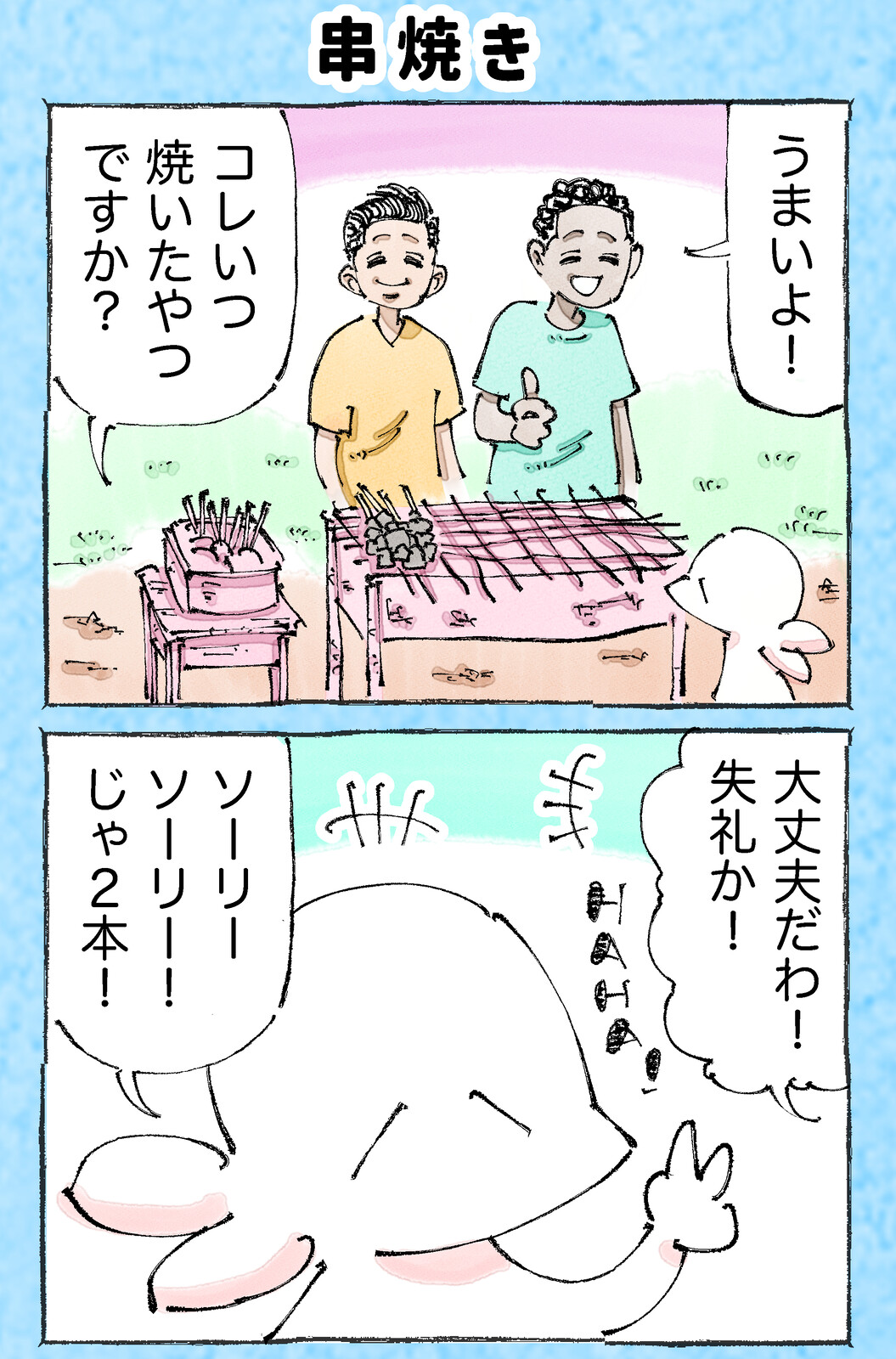 そんな日もある。【8】 2024年02月07日 ●漫画も写真もタップでくっきり見ていただけます☀︎ 👇ほかの日。。。 そりゃ屋台めしいろいろ食ってたら中にはそんな日もある。。。まぁこれも旅の一興☀︎写真はイメージ●漫画も写真もタップでくっきり見ていただけます☀︎ 👇こちらもどうぞ👇 👇実体験の紀行もの👇☝️読者登録して頂けるとありがたすぎます!☝️最新刊が出ますのでよろしければぜひ☀︎ 「そんな日もある。」カテゴリの最新記事 タグ :#そんな日もある。 < 前の記事次の記事 > コメント コメント一覧 (12) 1. ミー太郎 2024年02月07日 21:07 海鮮物は火を通してもヤバいか…😆💦 0 五箇野人(ごかやじん) がしました 2. ノブコ 2024年02月07日 21:08 旅の一興とは思えないけど、貴重な体験かもしれませんね。 0 五箇野人(ごかやじん) がしました 3. オレンジママ 2024年02月07日 21:14 なんて日だ😆 0 五箇野人(ごかやじん) がしました 4. あーさん 2024年02月07日 21:48 焼いたのは今日でも、獲ったのがいつか…。 0 五箇野人(ごかやじん) がしました 5. 2024年02月07日 22:52 現地の人は平気とか? 0 五箇野人(ごかやじん) がしました 6. かな 2024年02月07日 23:14 ポンポン痛かったね😢 0 五箇野人(ごかやじん) がしました 7. パナ 2024年02月08日 00:40 屋台ってかBBQみたいでワロタ 0 五箇野人(ごかやじん) がしました 8. Jun 2024年02月08日 07:36 焼いても駄目な菌はいますよね。 私も先日イカで・・・ 0 五箇野人(ごかやじん) がしました 9. どろにんぎょう 2024年02月08日 11:43 しっかりやられててワロタ 0 五箇野人(ごかやじん) がしました 10. 🦍 2024年02月08日 21:56 そんな日もある、トイレだけですめばまだいいかも………気をつけて ね 😿😿😿 0 五箇野人(ごかやじん) がしました 11. ななこ 2024年02月19日 22:04 そんな日もあると思えたら旅も楽しい♪ ですね😅 0 五箇野人(ごかやじん) がしました 12. もち 2024年02月24日 02:00 現地の屋台で売られているものを食べるのも旅の醍醐味なんだろうけど、綺麗なトイレしか使えない私は海外旅行向いてないんだろうな(^^; 0 五箇野人(ごかやじん) がしました コメントフォーム 名前 コメント 記事の評価 リセット リセット 顔 星 情報を記憶 コメントを投稿する