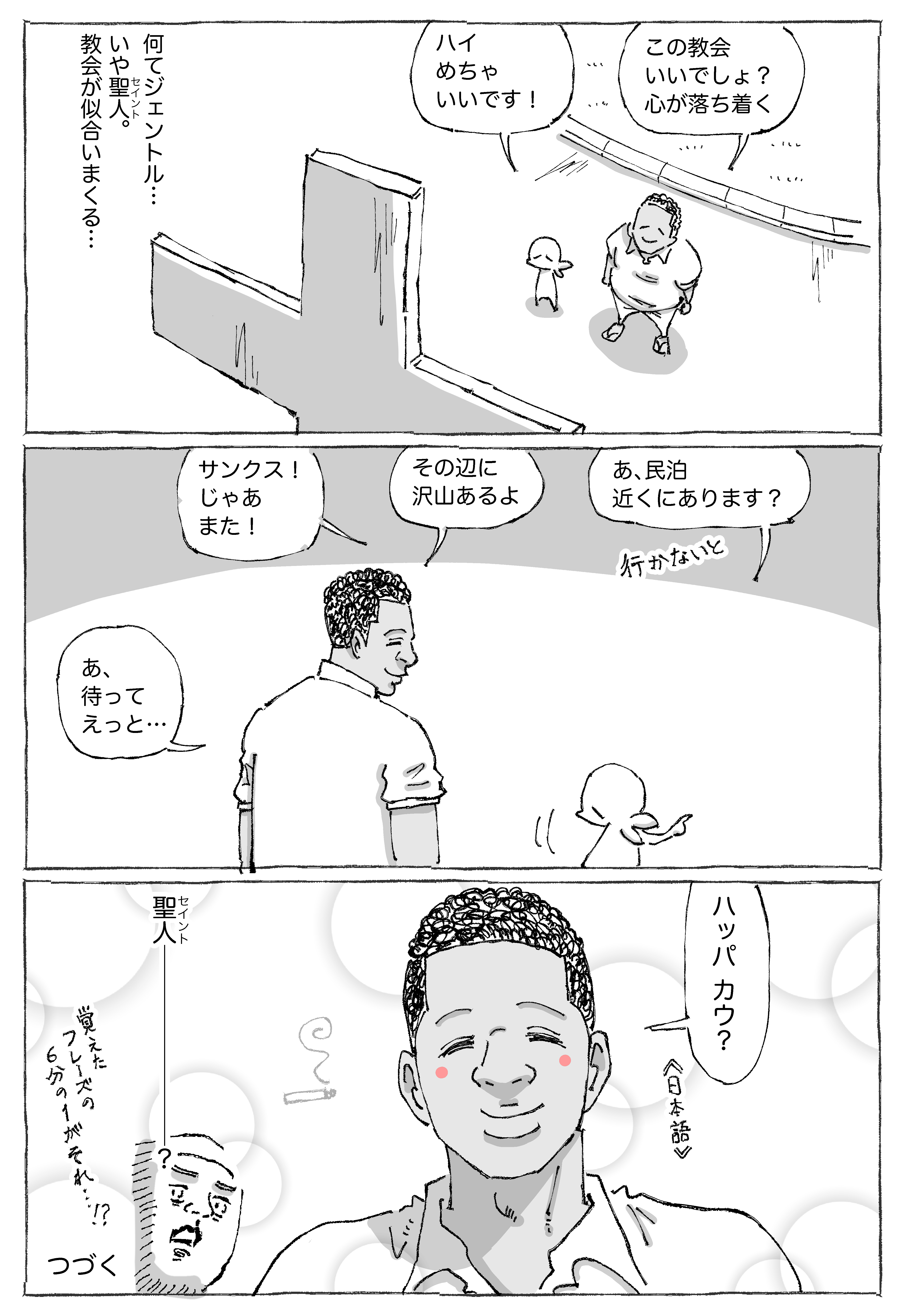 【5】海外で一晩のうちに数多出会う衝撃と結末。 2021年03月03日 前回の【4】はこちらです✍️はじめの【1】はこちらです✍️明日につづきます☀︎引きで見た教会と近くにあった人の消えた繁華街。。マネキンがいい味です☀︎●漫画も写真もタップでくっきり見ていただけます☀︎つづきの【6】はこちらです✍️👇各話一覧です👇【1】 【2】 【3】 【4】 【5】 【6】 【7】 【8】 【9】 【10】 【11】 【12】 【13】【14】 【15】 【16】 この時も例のブツにまつわる…旅日記✍️ほかの海外のギャップがシビれためしの話✍️ほかの海外のつづきものの話✍️読者登録して頂けるとありがたすぎます! 「連載もの」カテゴリの最新記事 タグ :#海外で一晩のうちに数多出会う衝撃と結末。 < 前の記事次の記事 > コメント コメント一覧 (12) 1. ポポ丸 2021年03月03日 21:10 聖人から衝撃の一言😱 ハッパが、紅茶かお茶であることを期待します😅 マネキンの顔がリアルで、なんだか夜中に動いてそうに思えて、ちょっぴり怖いです😣 0 五箇野人(ごかやじん) がしました 7. 五箇野人 2021年03月04日 20:45 >>1 たしかに紅茶という線もありますね…! 0 五箇野人(ごかやじん) がしました 2. 堕天使⁉️ 2021年03月03日 21:22 ハッパ、ダメ絶対😂 0 五箇野人(ごかやじん) がしました 8. 五箇野人 2021年03月04日 20:45 >>2 まさに堕天使…! 0 五箇野人(ごかやじん) がしました 3. sa 2021年03月03日 21:44 手巻き煙草…辺りで😅ドキドキ 0 五箇野人(ごかやじん) がしました 9. 五箇野人 2021年03月04日 20:46 >>3 たしかにそれならセーフですよね…! 0 五箇野人(ごかやじん) がしました 4. ななし 2021年03月03日 22:24 葉っぱも色々あるけれど~😅 0 五箇野人(ごかやじん) がしました 10. 五箇野人 2021年03月04日 20:46 >>4 おっしゃる通りです☀︎ 0 五箇野人(ごかやじん) がしました 5. おてもやん 2021年03月03日 23:15 善良な始まりでいつもとちゃうやん〜ってな話の流れだったからオチがお、おう!ってなっちゃった。 ハッパいらんぞ。 マネキン、3人おる(笑) 0 五箇野人(ごかやじん) がしました 11. 五箇野人 2021年03月04日 20:46 >>5 いい味のマネキンでした☀︎ 0 五箇野人(ごかやじん) がしました 6. ゆきまる 2021年03月04日 00:08 セイントーーーー!???? 0 五箇野人(ごかやじん) がしました 12. 五箇野人 2021年03月04日 20:47 >>6 まさに! 0 五箇野人(ごかやじん) がしました コメントフォーム 名前 コメント 記事の評価 リセット リセット 顔 星 情報を記憶 コメントを投稿する