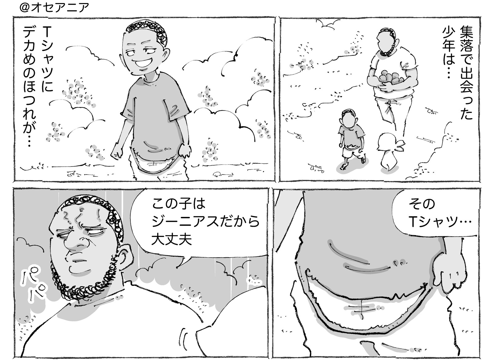 海外少年のほつれたTシャツと天才。