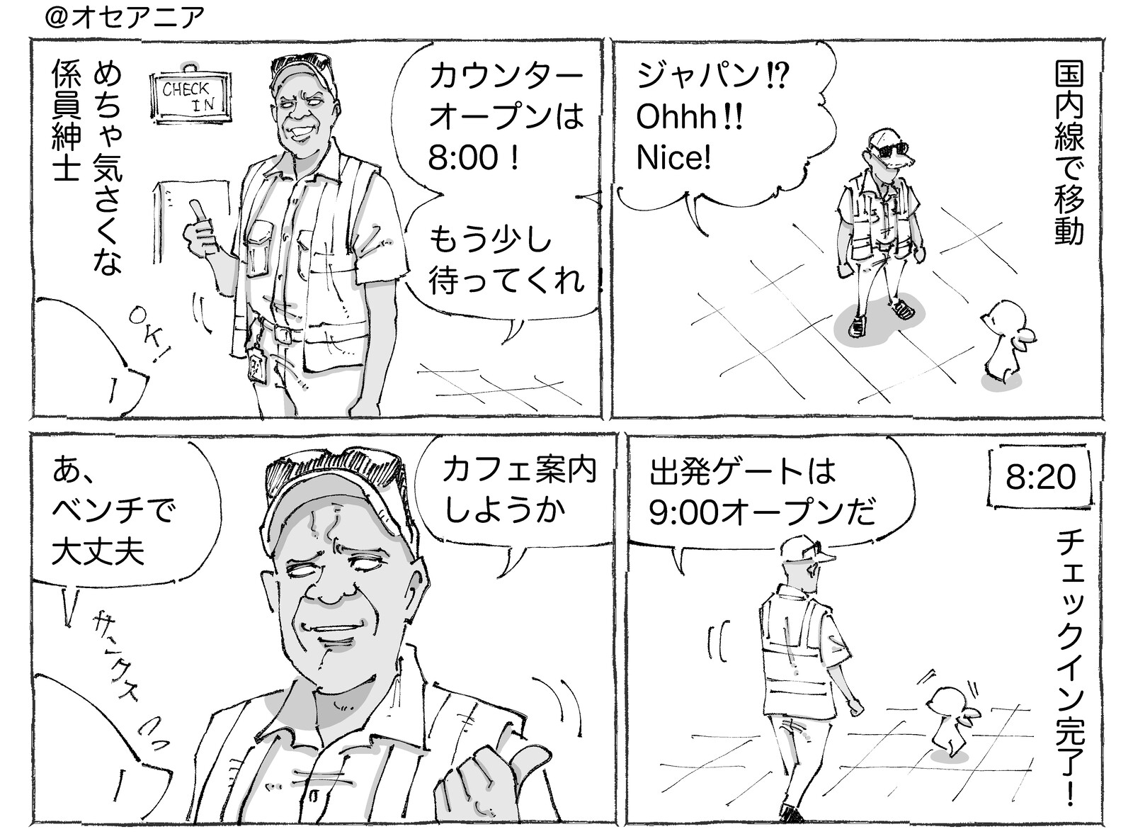 ●漫画も写真もタップでくっきり見ていただけます☀︎ 惚れてまう。笑顔も素敵なジェントル紳士☀︎入って正面がカウンター左が出発ゲートそして待機してた外のベンチ☀︎●漫画も写真もタップでくっきり見ていただけます☀︎この時も惚れてまった。。。旅日記🌍 こちらは惚 ...