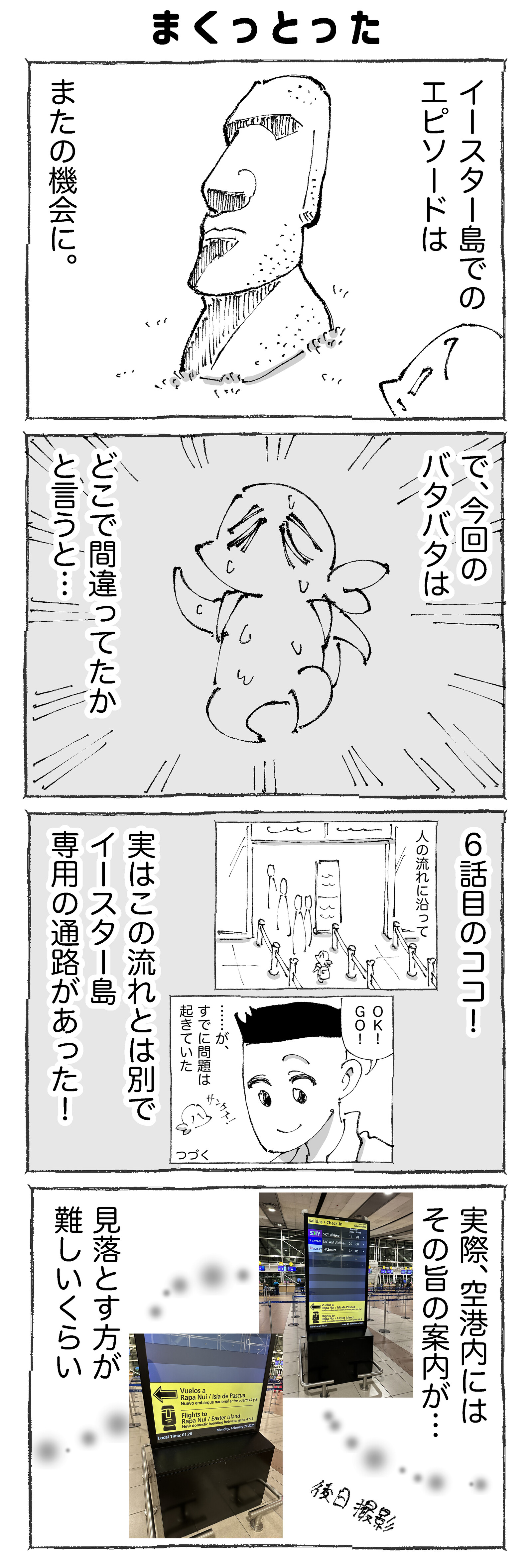 【7】イースター島の入島がバタバタすぎた。 ※連載ものは木~土に更新中です☀︎前回の【6】はこちらです✍️ はじめの【1】はこちらです✍️@中南米つづきの【8】はこちらです✍️👇各話一覧はこちらです👇【1】 【2】 【3】 【4】【5】 【6】 【7】 【8】【9】 【10】 【11】 【12】【13】 【14】 【15 ... ※連載ものは木~土に更新中です☀︎前回の【6】はこちらです✍️ はじめの【1】はこちらです✍️@中南米つづきの【8】はこちらです✍️👇各話一覧はこちらです👇【1】 【2】 【3】 【4】【5】 【6】 【7】 【8】【9】 【10】 【11】 【12】【13】 【14】 【15】 【16】【17】 【18】 【19】 【20】【21】 【22】 【23】 【24】順調。。。 👇こちらもタップどうぞ👇ゲート前に到着して準備万端☀︎●漫画も写真もタップでくっきり見ていただけます☀︎ 👇こちらもどうぞ👇 👇実体験の紀行もの👇☝️読者登録して頂けるとありがたすぎます!☝️※2024年よりLINEでの通知が終了します…! タグ :#イースター島の入島がバタバタすぎた。 2025年04月24日 続きを読む
