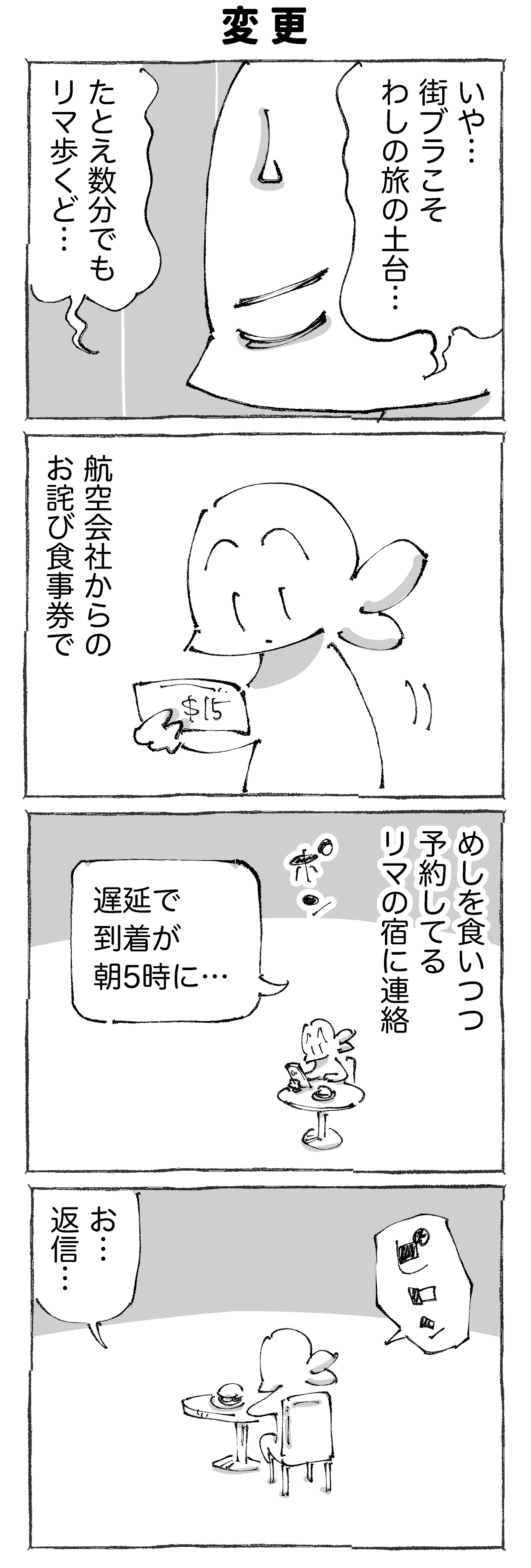 【26】海外飛行機が目的地に辿り着かん。 ※連載ものは木~土に更新中です☀︎前回の【25】はこちらです✍️ はじめの【1】はこちらです✍️ @中南米つづきの【27】はこちらです✍️ 👇各話一覧はこちらです👇【1】 【2】 【3】 【4】【5】 【6】 【7】 【8】【9】 【10】 【11】 【12】【13】 【14】 ... ※連載ものは木~土に更新中です☀︎前回の【25】はこちらです✍️ はじめの【1】はこちらです✍️ @中南米つづきの【27】はこちらです✍️ 👇各話一覧はこちらです👇【1】 【2】 【3】 【4】【5】 【6】 【7】 【8】【9】 【10】 【11】 【12】【13】 【14】 【15】 【16】【17】 【18】 【19】 【20】【21】 【22】 【23】 【24】【25】 【26】 【27】 【28】【29】 【30】すご! 👇こちらもタップどうぞ👇空港の和食店は漢字を縦にした時の口へんが絶妙な感じに☀︎●漫画も写真もタップでくっきり見ていただけます☀︎ 👇こちらもどうぞ👇 👇実体験の紀行もの👇☝️読者登録して頂けるとありがたすぎます!☝️※2024年よりLINEでの通知が終了します…! タグ :#海外飛行機が目的地に辿り着かん。 2025年08月14日 続きを読む